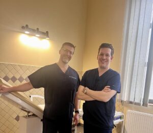 A képen Dr. Hazay Máté és Dr. Hajnáczky András a Szülészeti-Nőgyógyászati Osztály orvosai láthatók, akik